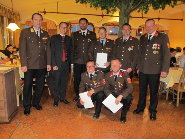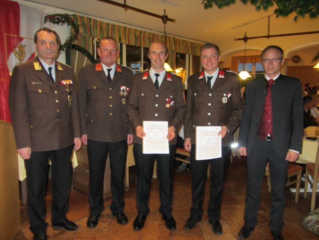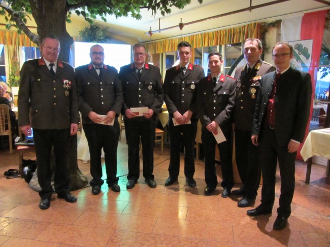 Bei der anschließenden Mitgliederversammlung im Gasthof Kirchbichl konnte die Feuerwehr Hallwang eine erfreuliche Bilanz über das abgelaufene Feuerwehrjahr ziehen. Die Feuerwehr Hallwang leistete rund 7.900 ehrenamtliche Stunden. Darin enthalten sind 59 Einsätze und 40 Übungen auf Orts-, Abschnitts- und Bezirksebene. Bei dem Tätigkeitsbericht konnten Rückblicke auf die vergangenen Einsätze und Übungen gegeben werden. Außerdem wurden auch zahlreiche Ehrungen und Auszeichnungen an Kameraden der Feuerwehr Hallwang übergeben. Ebenso wurden einige Kameraden befördert und durften von OFK Manfred Hauser, AFK Johann Landrichtinger und Bürgermeister Johann Ebner die Beförderungsurkunde entgegennehmen.