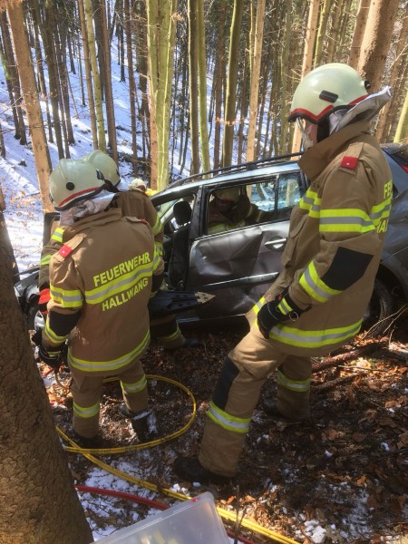 Angenommen wurde ein Verkehrsunfall bei der Dax Lueg Straße oberhalb des Gasthofes Daxlueg. Szenario war, dass ein PKW bei einer steilen Kurve von der Straße abgekommen war und dabei bei einer steilen Böschung im Wald zum stehen gekommen war. Im PKW mussten die 5 Insassen von der Feuerwehr mittels hydraulischen Rettungsgerätes befreit und anschließend mittels Schaufeltrage über das steile Waldstück hinaufgetragen werden. Zusätzlich wurde auch noch ein Brandschutz aufgebaut und die Unfallstelle abgesichert. Nachdem die Menschenrettung beendet war, wurde die Unfallstelle noch aufgeräumt und das Fahrzeug aus dem Waldstück mittels Einbauseilwinde des Rüstlöschfahrzeuges geborgen. Nach 2 Stunden konnte die Übung beendet werden.
